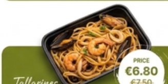 Pasta fresca saltada con gambas, mejillones y toque de ajo.